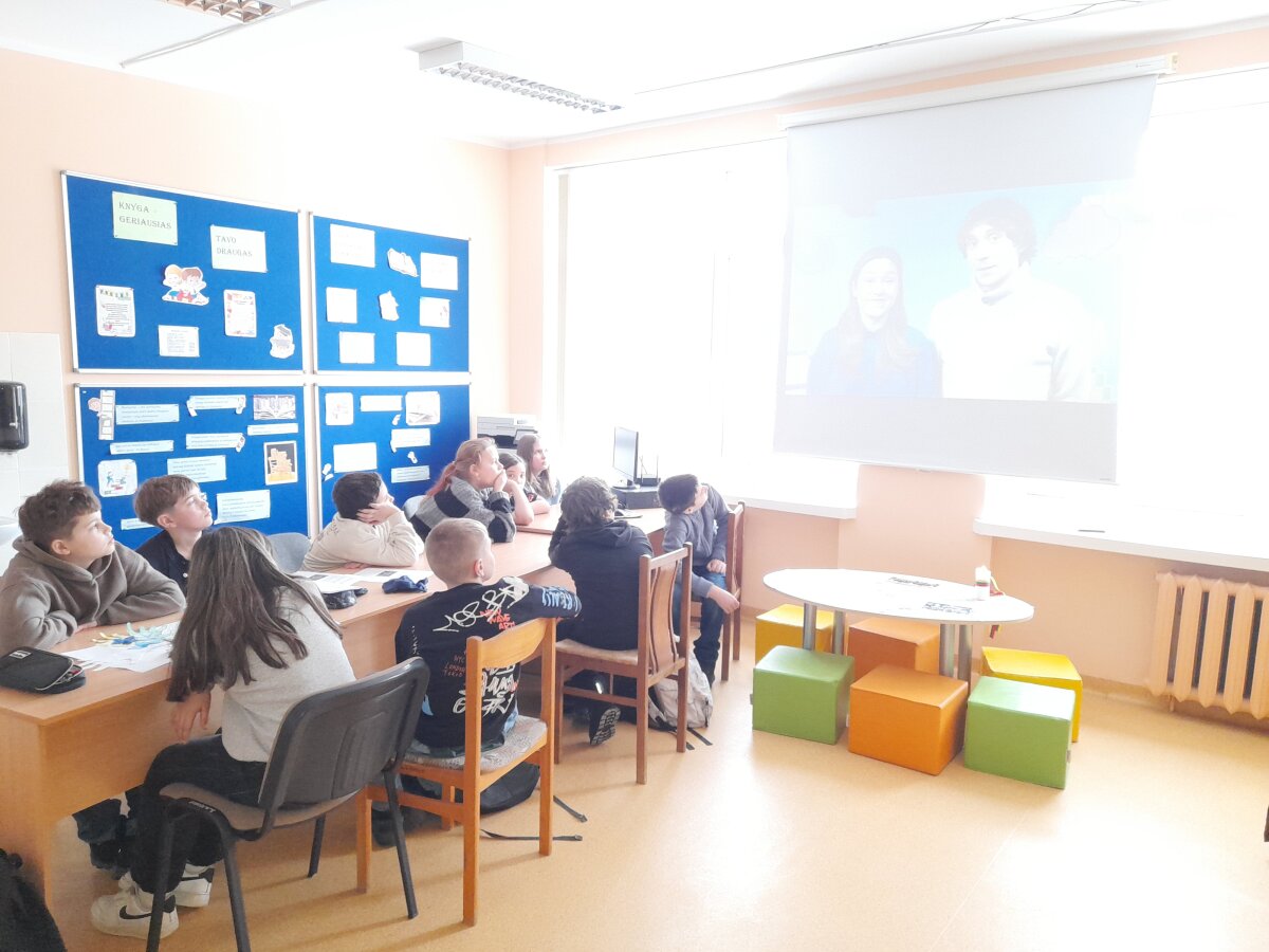 Gimnazijos bibliotekoje su 5b kl. (mokyt. Audronė Antropikienė) mokiniais diskutavome apie tėvynės laisvę, apie tėvynės ar tos šalies, kurioje gyvename mes ir mūsų artimieji, svarbą. Aptarėme, kokioje situaciją buvo atsidūręs Vilniaus TV bokštas, LR Seimas, Lietuvos žmonės. Prisiminėme žuvusiuosius, simbolines gėles neužmirštuoles...