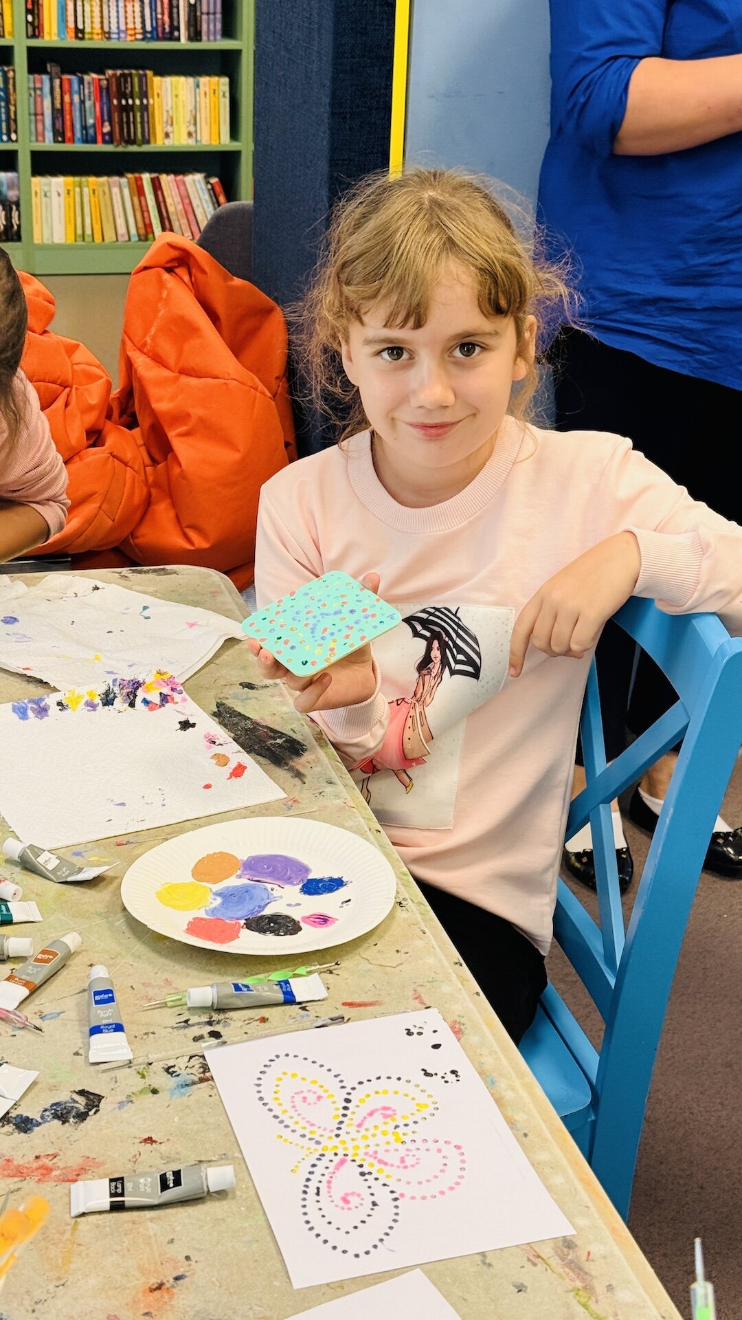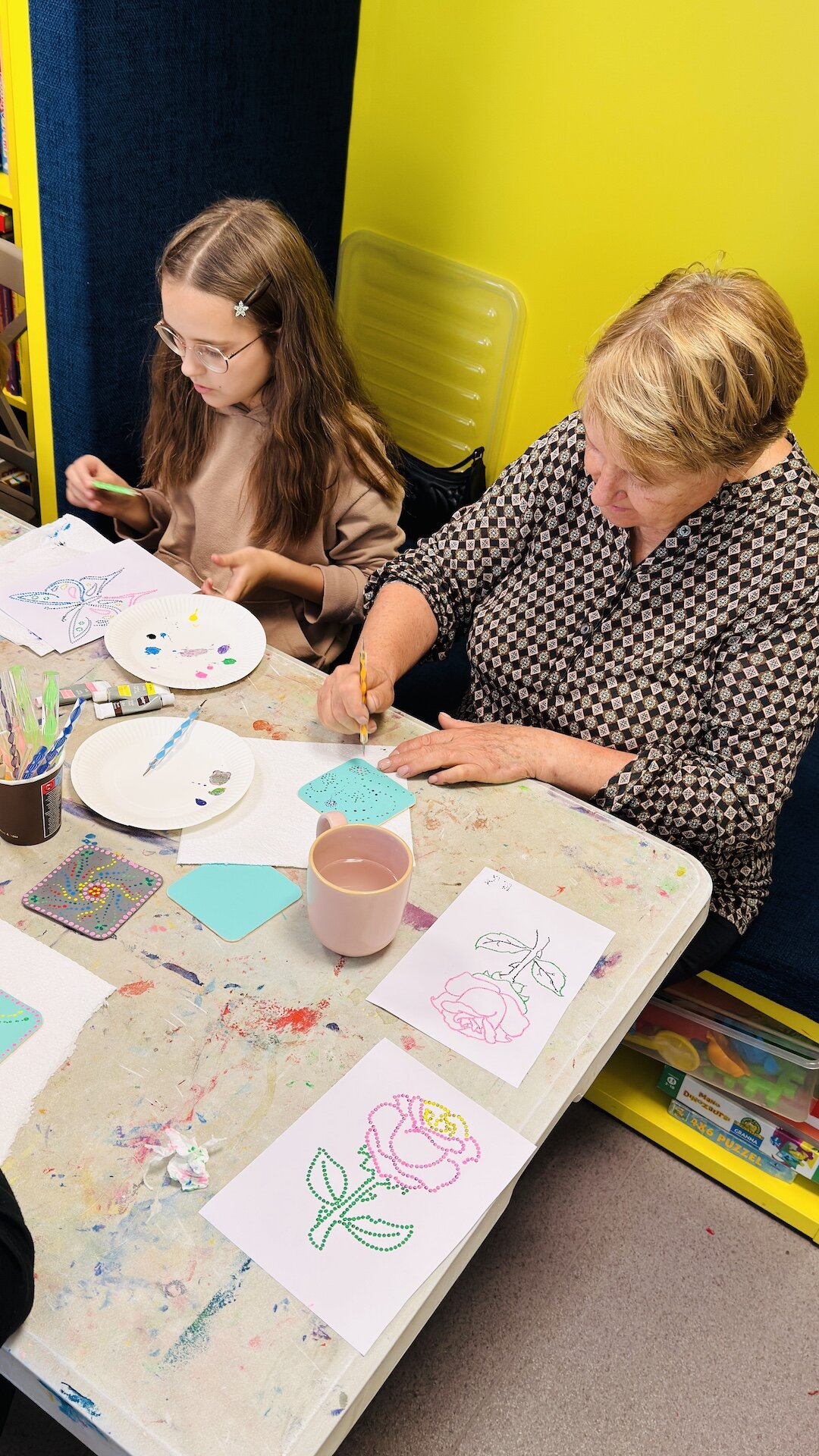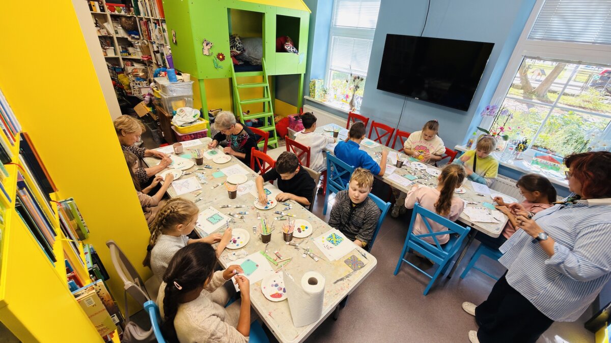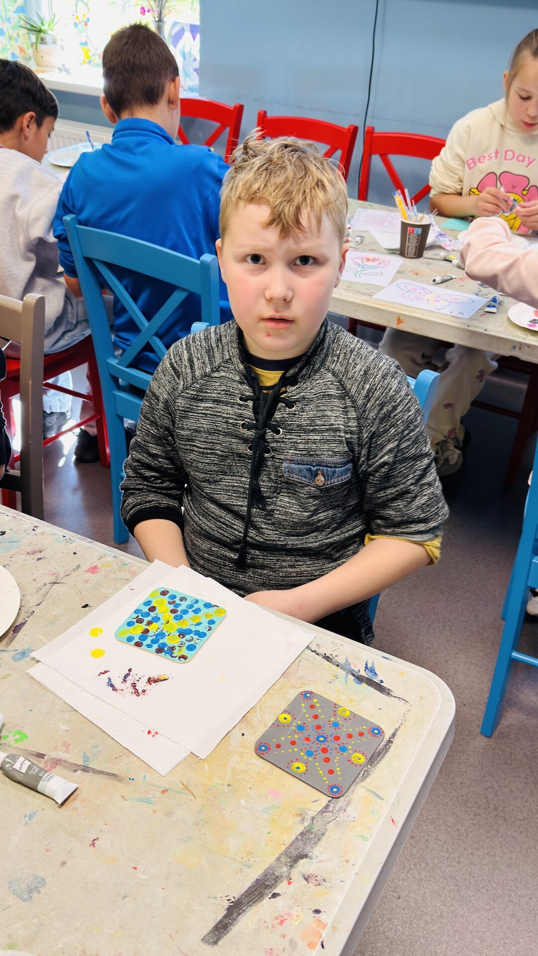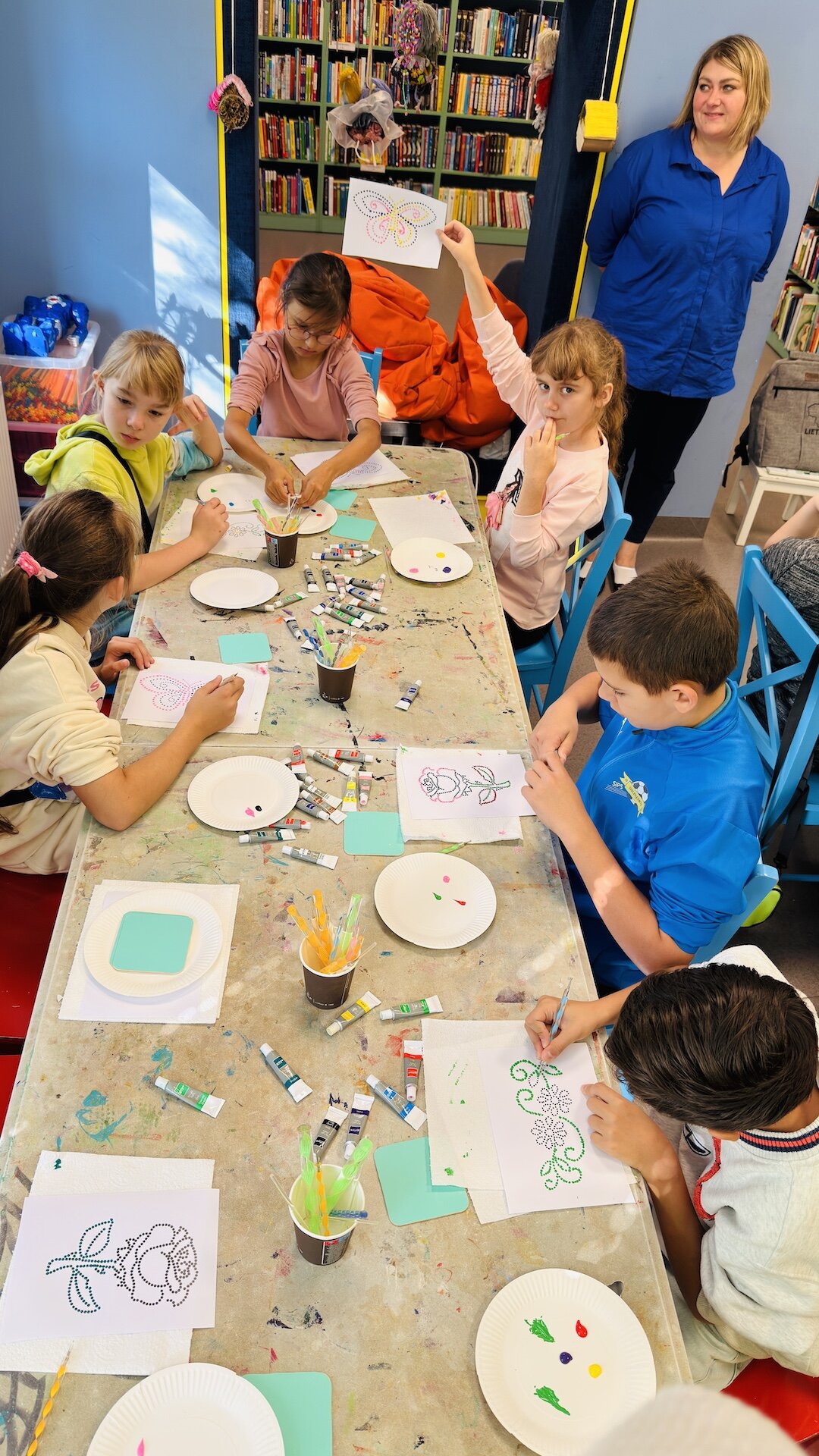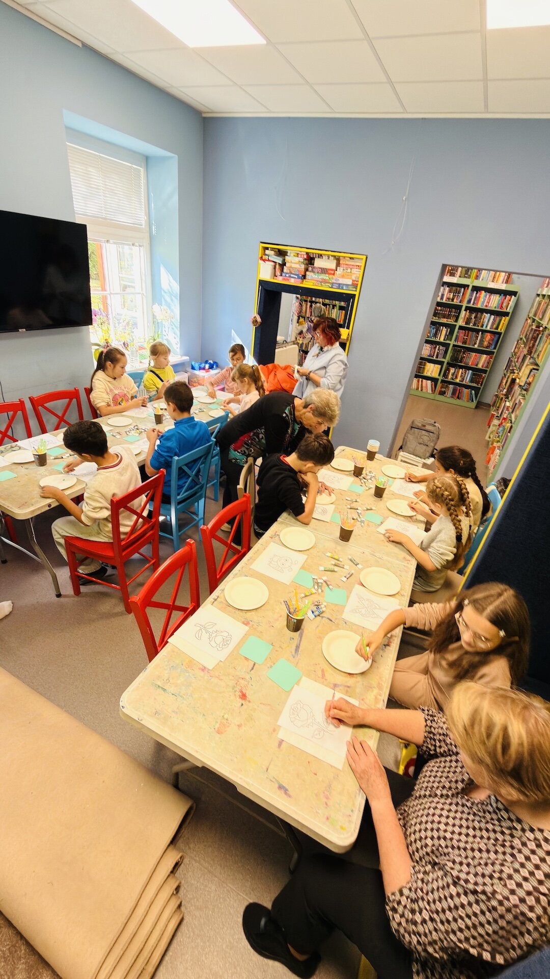 Ekskursija baigėsi Grigiškių bibliotekoje, kur vyko edukacinis užsiėmimas. Mokiniai dalyvavo kūrybinėje veikloje: piešė, spalvino, bendravo su bibliotekos darbuotojais, susipažino su bibliotekos erdvėmis bei knygų įvairove. Jie išbandė taškavimo techniką – mažais taškeliais dekoravo popierių, kuris virto tikrais meno šedevrais. Kiekvienas pasigamino ir originaliai išpuošė padėkliuką arbatos puodeliui, kurį galės parsinešti namo kaip prisiminimą iš šios dienos.
