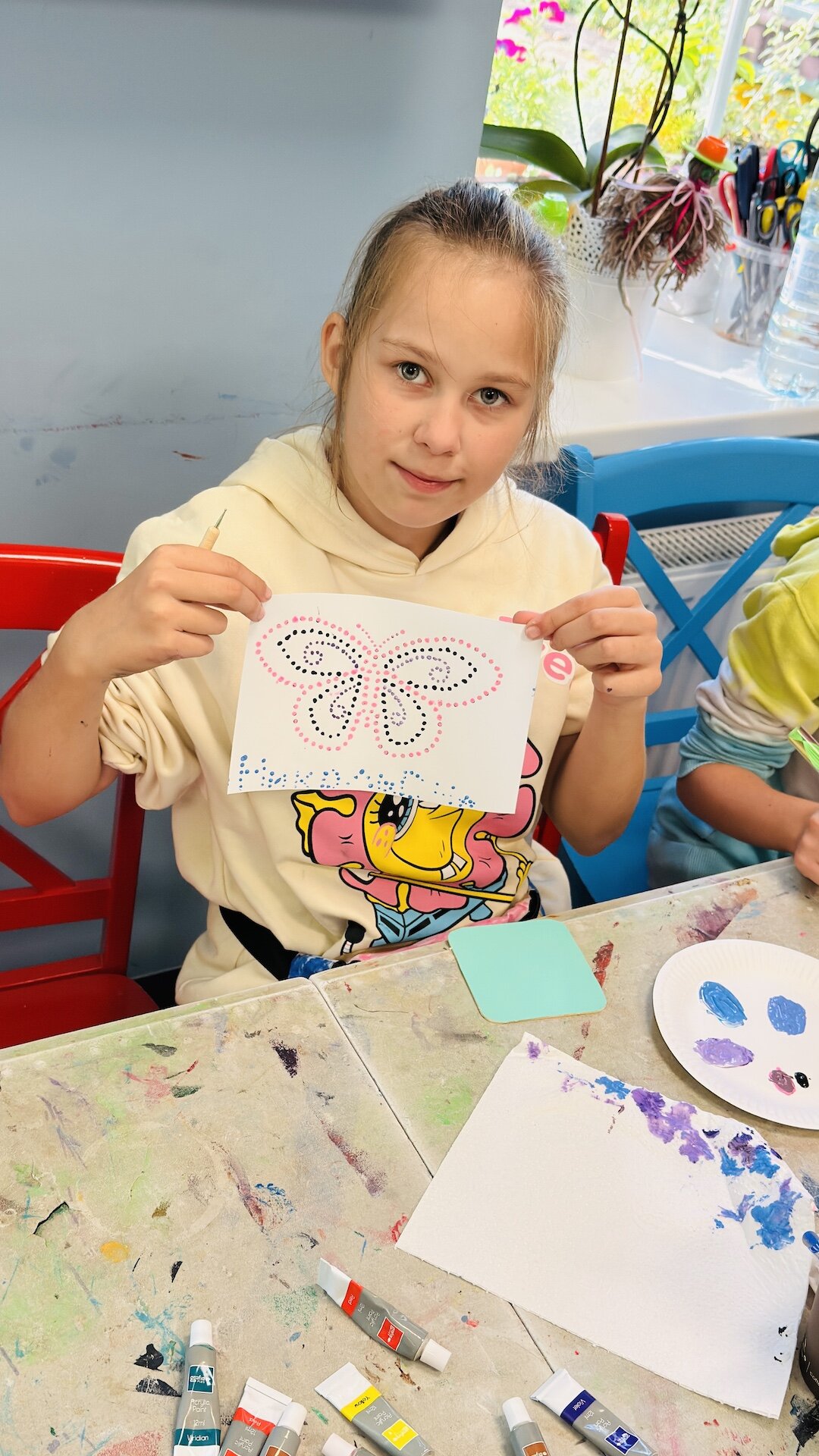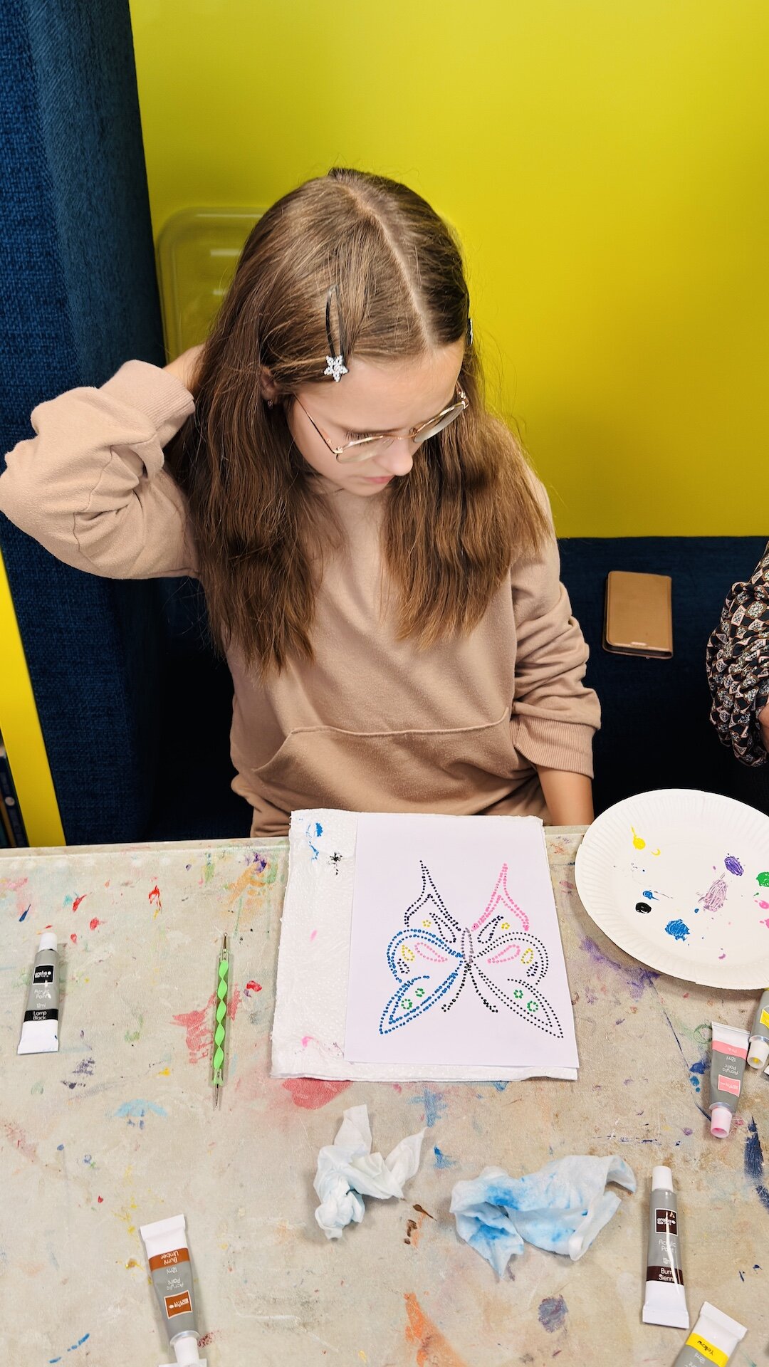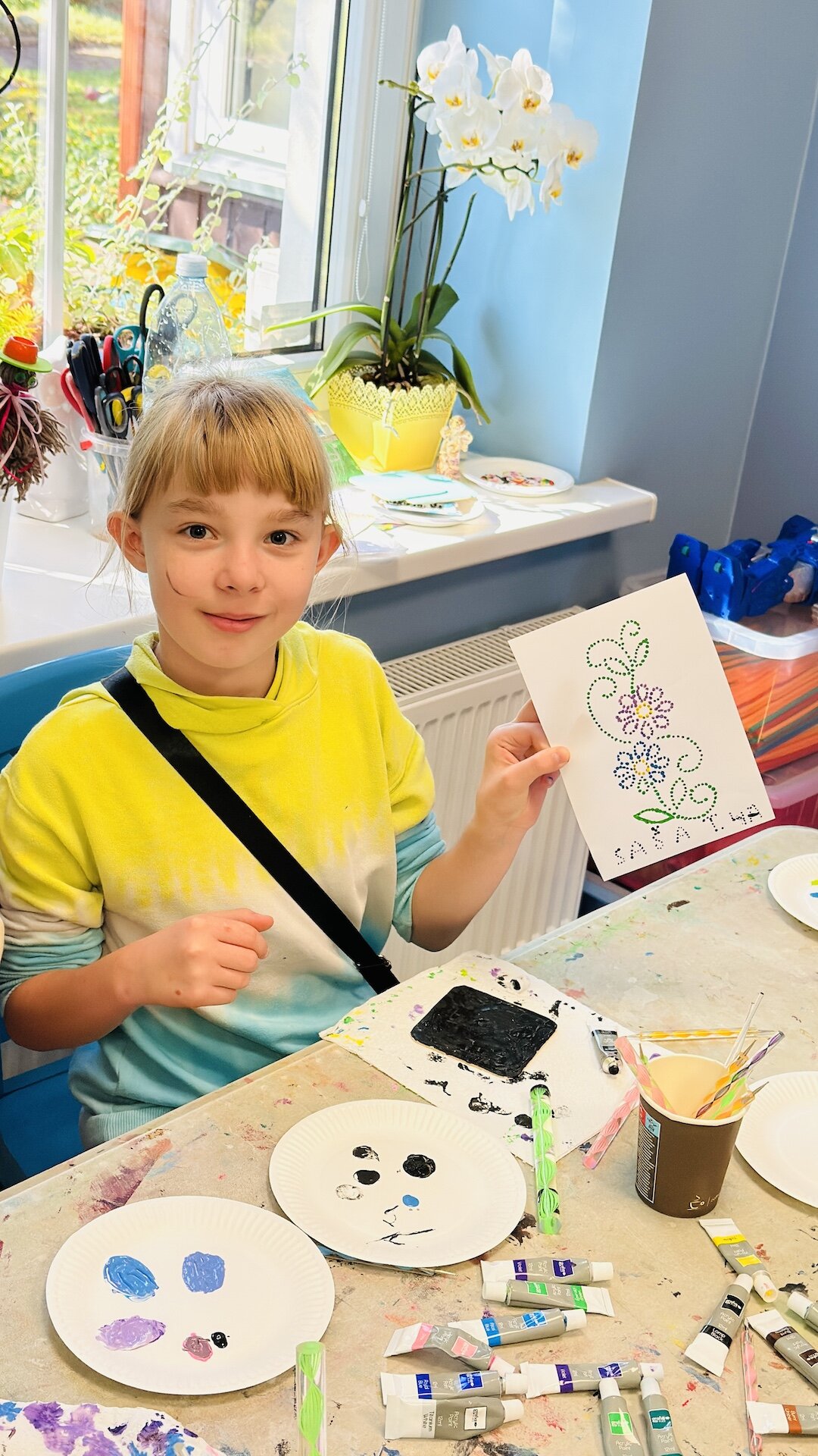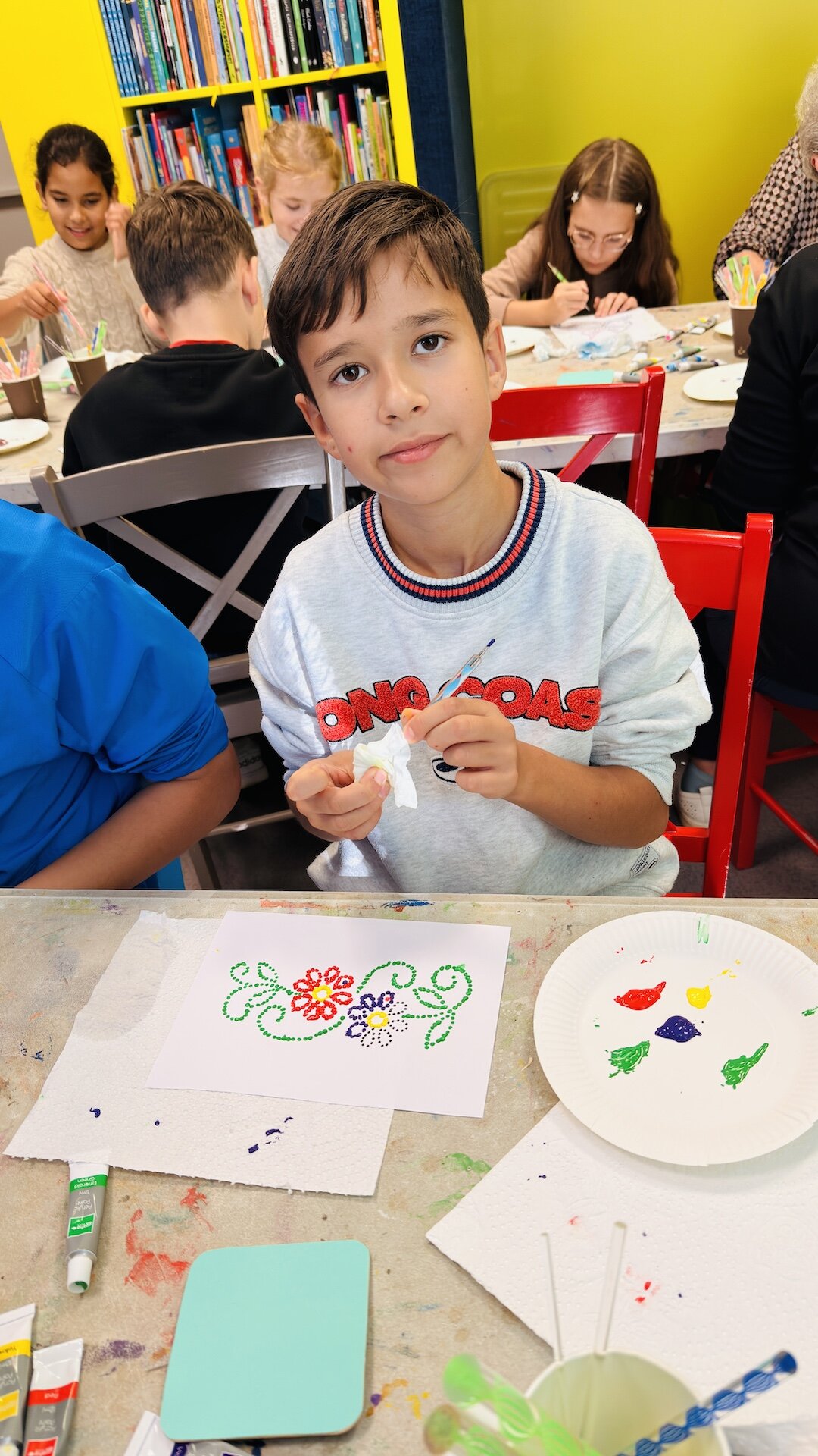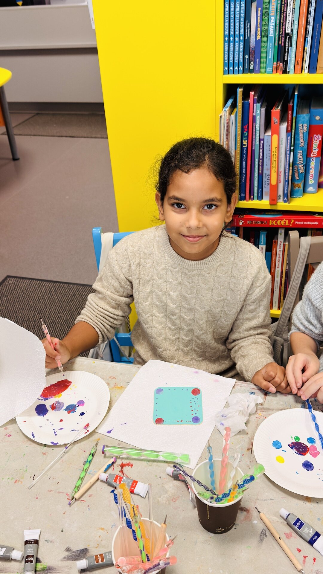 Ekskursija baigėsi Grigiškių bibliotekoje, kur vyko edukacinis užsiėmimas. Mokiniai dalyvavo kūrybinėje veikloje: piešė, spalvino, bendravo su bibliotekos darbuotojais, susipažino su bibliotekos erdvėmis bei knygų įvairove. Jie išbandė taškavimo techniką – mažais taškeliais dekoravo popierių, kuris virto tikrais meno šedevrais. Kiekvienas pasigamino ir originaliai išpuošė padėkliuką arbatos puodeliui, kurį galės parsinešti namo kaip prisiminimą iš šios dienos.