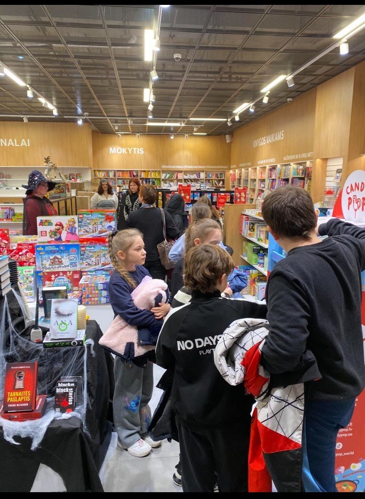 Spalio 31 d. 4b kl. mokiniai kartu su juos lydinčiomis mokytojomis – V. Vaiciulioniene ir mokytojo padėjėja B. Koršunova – lankėsi „Pegaso“ knygyne.