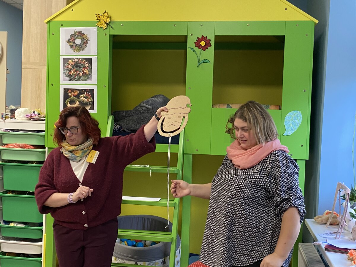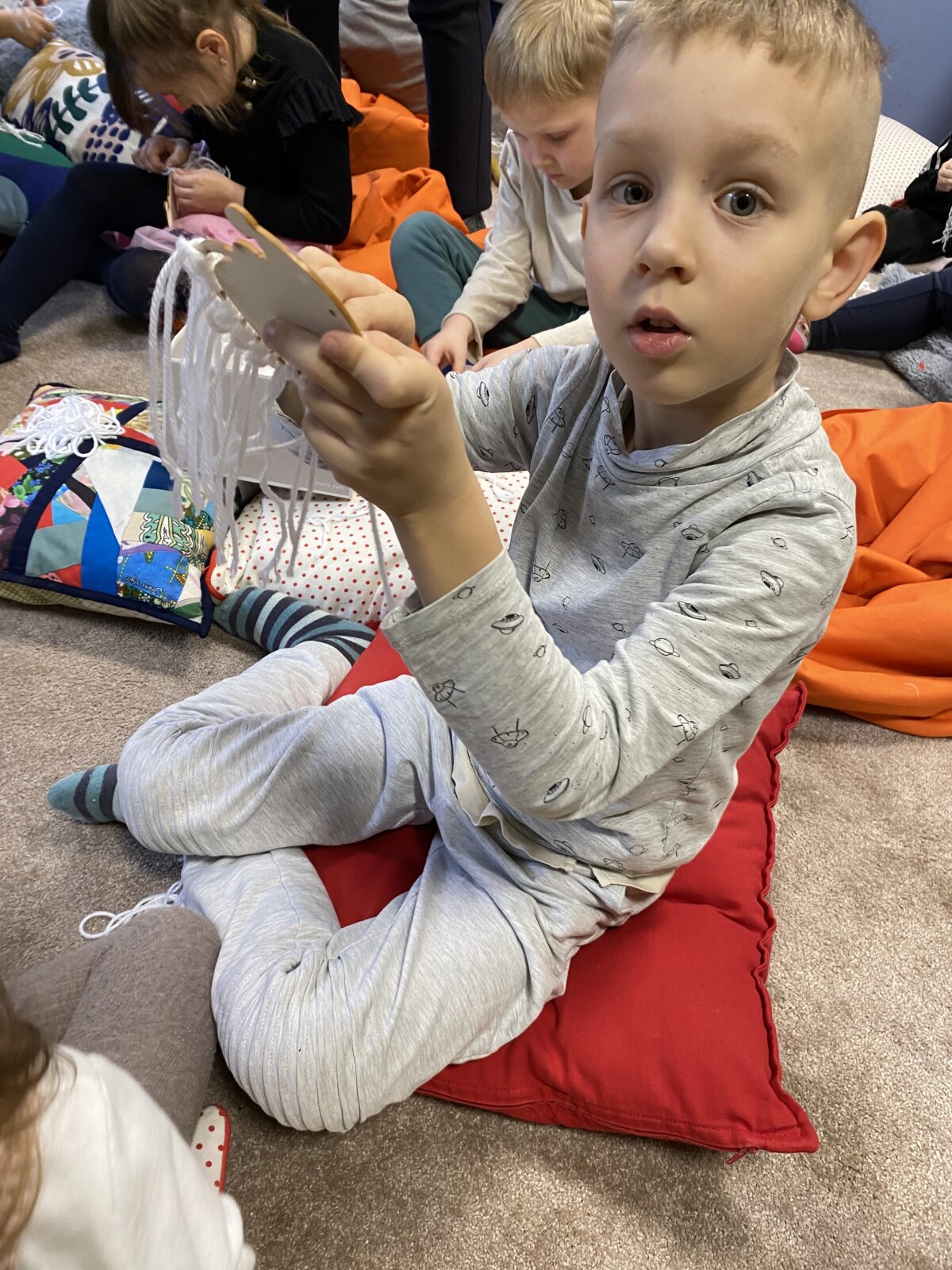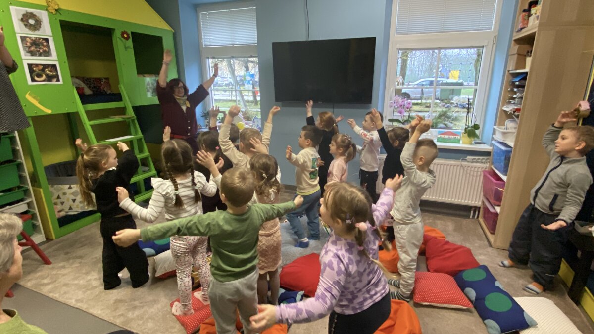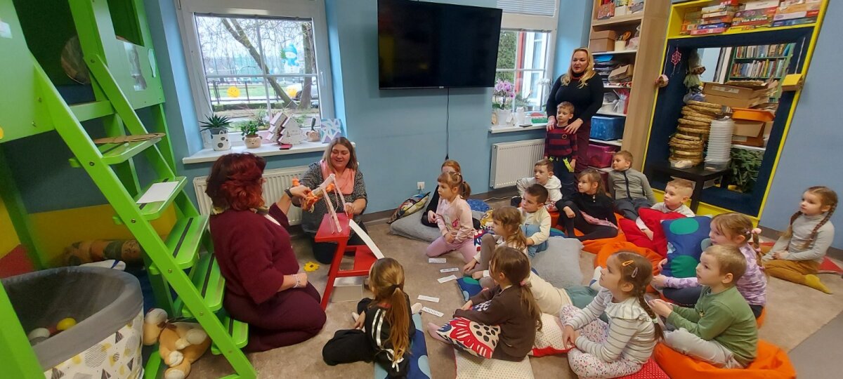 Vaikai klausėsi pasakos “Meškis ir žąsis”, kurią parašė Nadia Kovaliova. Ši istorija moko draugystės, pagarbos ir supratimo. Po pasakos skaitymo mažųjų laukė kūrybinės dirbtuvėlės. Šį kartą vaikai ant medinių Senelių Šalčių vėrė baltas siūles, iš kurių susiformavo pūkuota balta barzdelė. Kiekvienas darbelis tapo unikalus, o bibliotekos datbuotojos noriai padėjo vaikams atlikti visus žingsnius, padrąsino ir skatino kūrybiškumą.