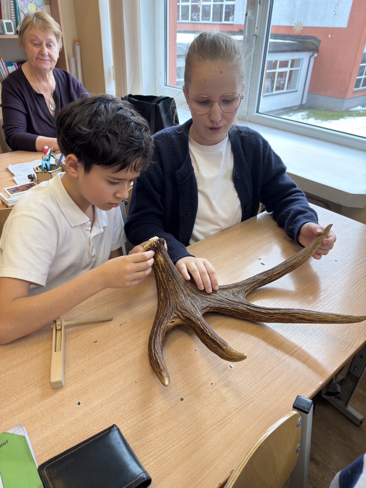 Didžiausią įspūdį paliko vilko kailis ir įspūdingi elnio ragai. Mokiniai su dideliu susidomėjimu tyrinėjo eksponatus, o pažvelgę pro žiūronus jautėsi tarsi tikri miško tyrinėtojai.