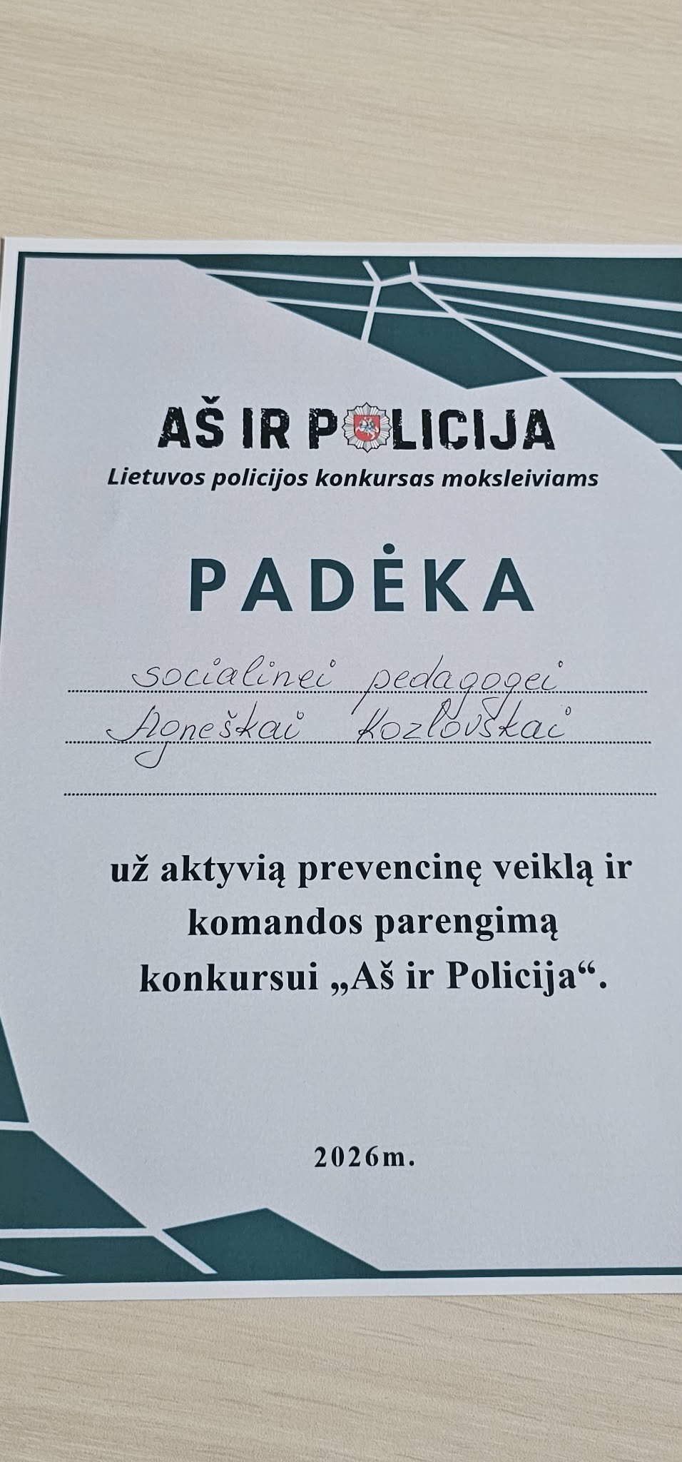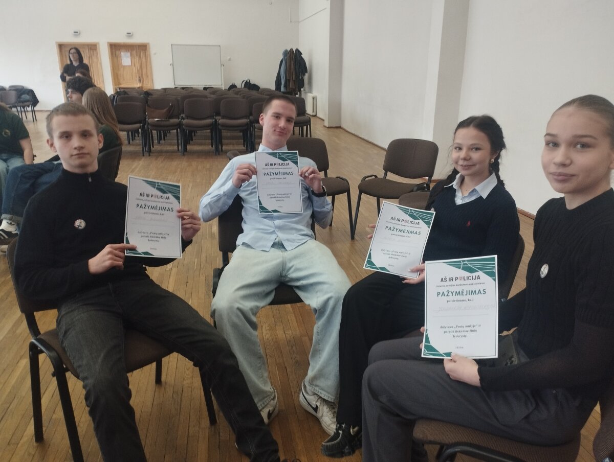 Ib (gimnaz.) kl. mokinių komanda (Aleksa Gigevič, Jelizaveta Kogodovskaja, Daniel Orlovskij, Daniil Golubovič) ir IIc (gimnaz.) kl. mokinių komanda (Matyžonok Donat, Filistovič Eva, Kulevičius Edgar, Charitonova Karina). Mokinius paruošė ir lydėjo socialinės pedagogės Agneška Kozlovska ir Jevgenija Petrucina.