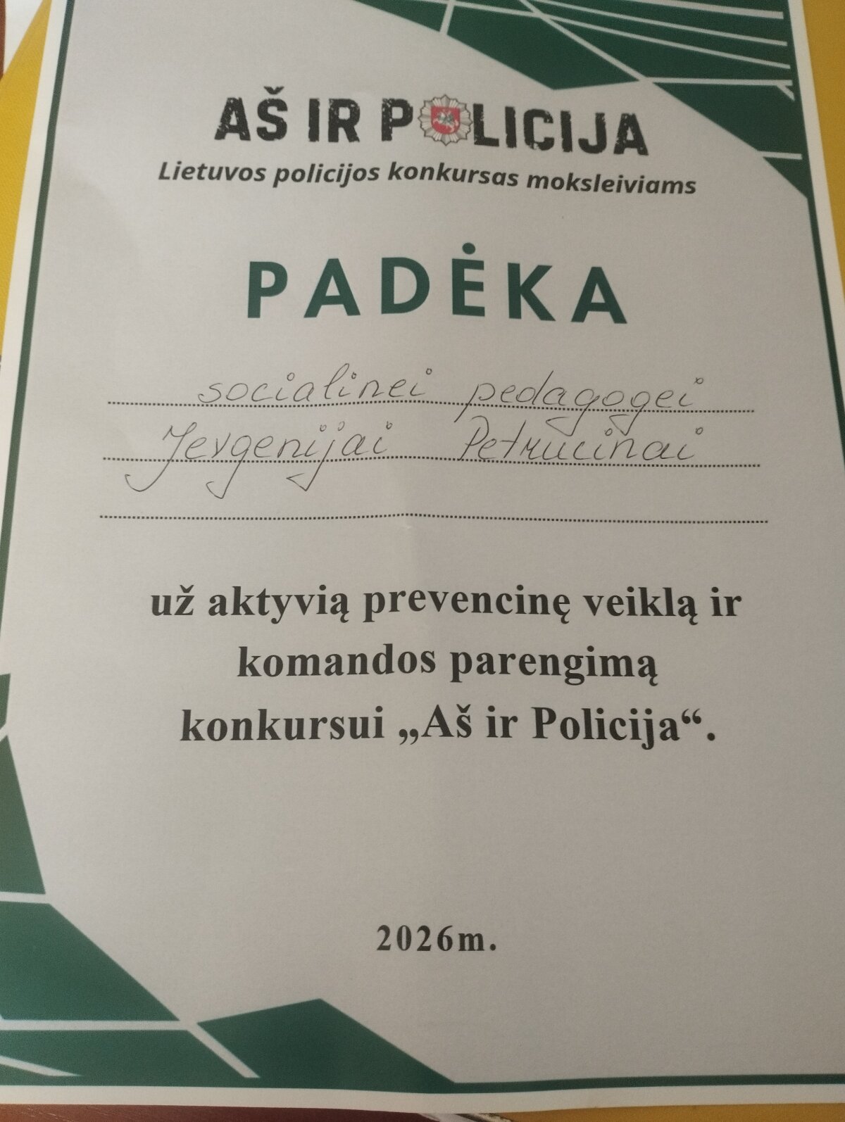 Šio konkurso tikslas – populiarinti pareigūno profesiją, ugdyti jaunimo sąmoningumą bei supratimą apie teisėsaugos sistemą, stiprinti bendradarbiavimą su policija. Moksleivių komandos savo jėgas išbandė interaktyvioje „Kahoot“ viktorinoje, kur prireikė ne tik teisinių žinių, bet ir greitos reakcijos bei komandinio susiklausymo.