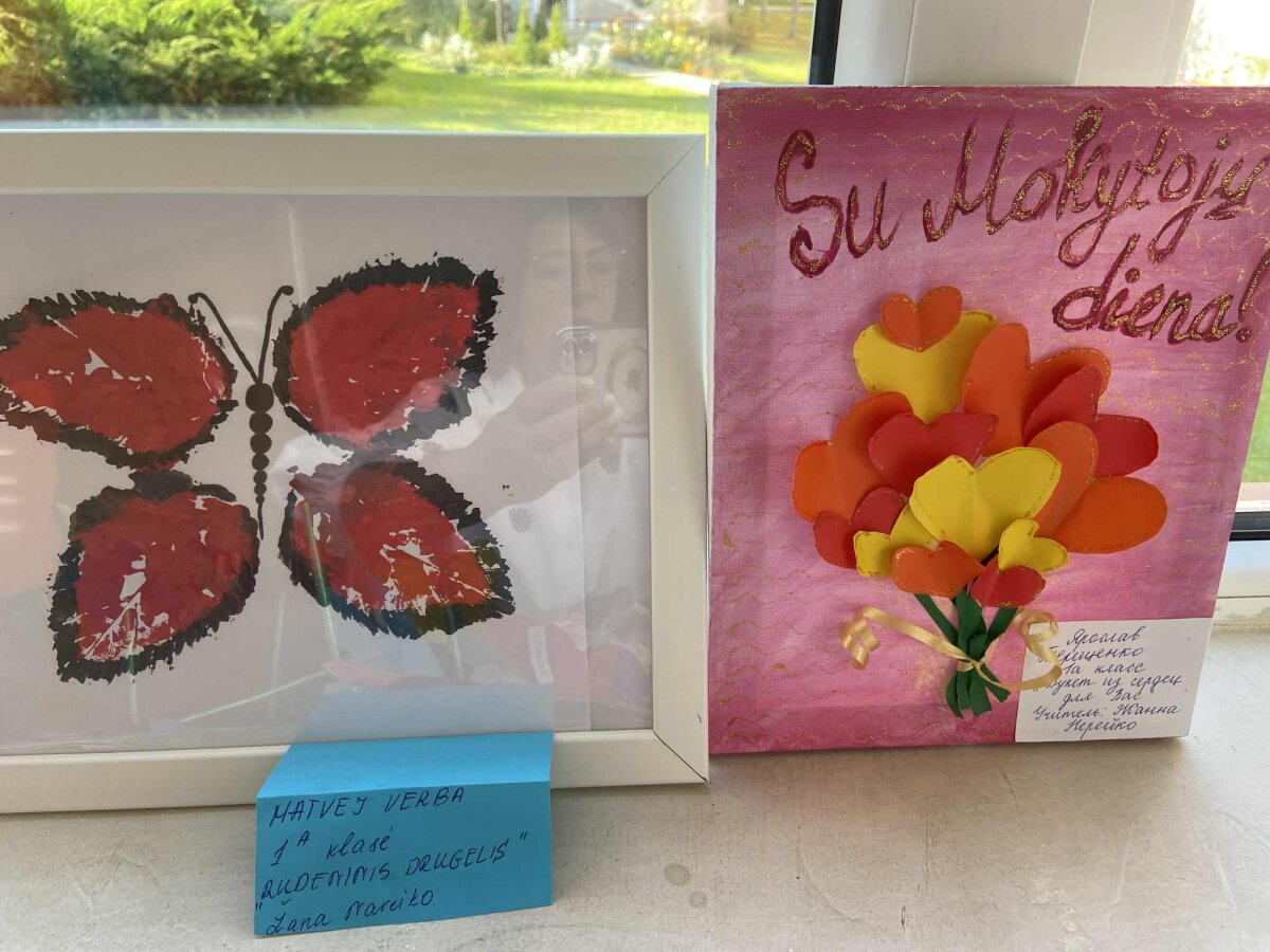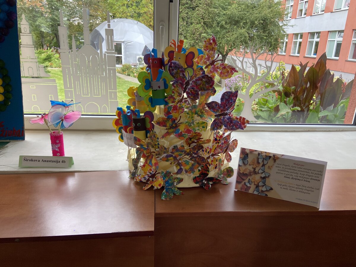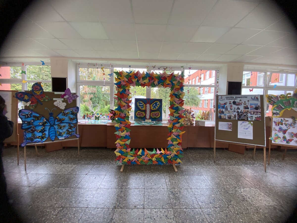 Parodos kuratorė pavaduotoja ugdymui Dalia Gaurytė, organizatorės – pradinio ugdymo vyr. mokytoja Viktorija Anikanova ir priešmokyklinio ugdymo mokytoja Valentina Pavliukovič – bendruomenei padovanojo ypatingą staigmeną: foto rėmelį, kuris pelnė daugybę pagyrų ir tapo ryškiu šventės akcentu bei puikia fotozona nuotraukoms. Rėmelis buvo papuoštas daugiau nei 100 origami drugelių, kuriuos padėjo sukurti mokinių ir mokytojų padėjėjos Renata Baniuševič, Stela Vitovič, Olga Trukšina. Rėmelį sukonstravo technologijų mokytojas Silvestras Pomarnackis bei mokinių taryba.