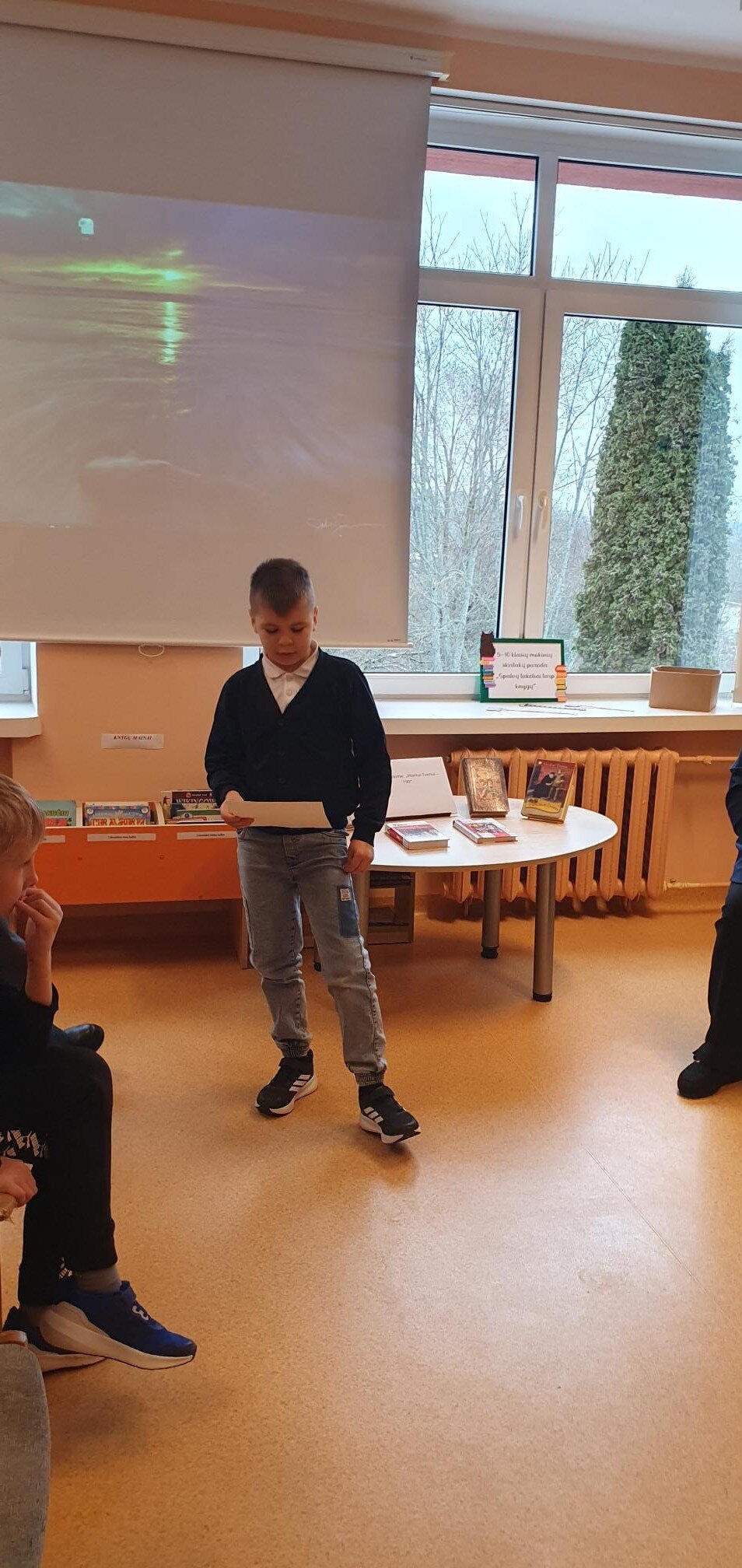 Besisukant metų ratui atsisveikiname su metų laikais, tad su 2b kl. (mokyt. Viktorija Anikanova) lapkričio 28 d. pagerbėme rudenį ir išlydėjome jį lietuvių kalba deklamuodami eiles, jas apipavidalindami. Todėl skaityklos stendą puošia mokinių darbelių paroda.