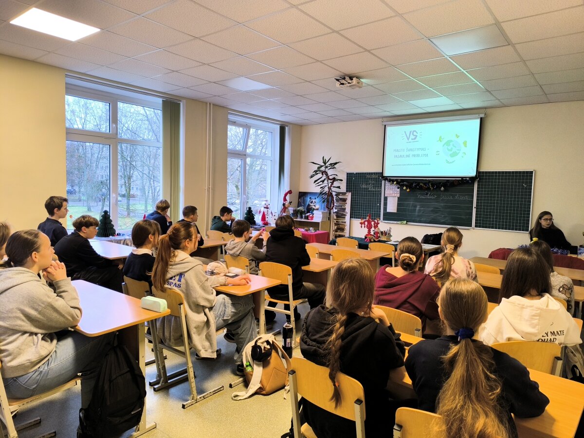 Gruodžio 3 d. 8a ir 8b kl. dalyvavo pamokoje „Maisto švaistymas ir mūsų planeta: mažais žingsniais į didelį pokytį“. Pamoką vedė Vilniaus visuomenės sveikatos centro darbuotoja Laura, kuri supažindino mokinius su maisto švaistymo problemomis ir būdais, kaip kiekvienas iš mūsų gali prisidėti prie pokyčių. Pamokos metu mokiniai aptarė, kodėl maisto švaistymas yra problema, kaip maisto švaistymas susijęs su klimato kaita.