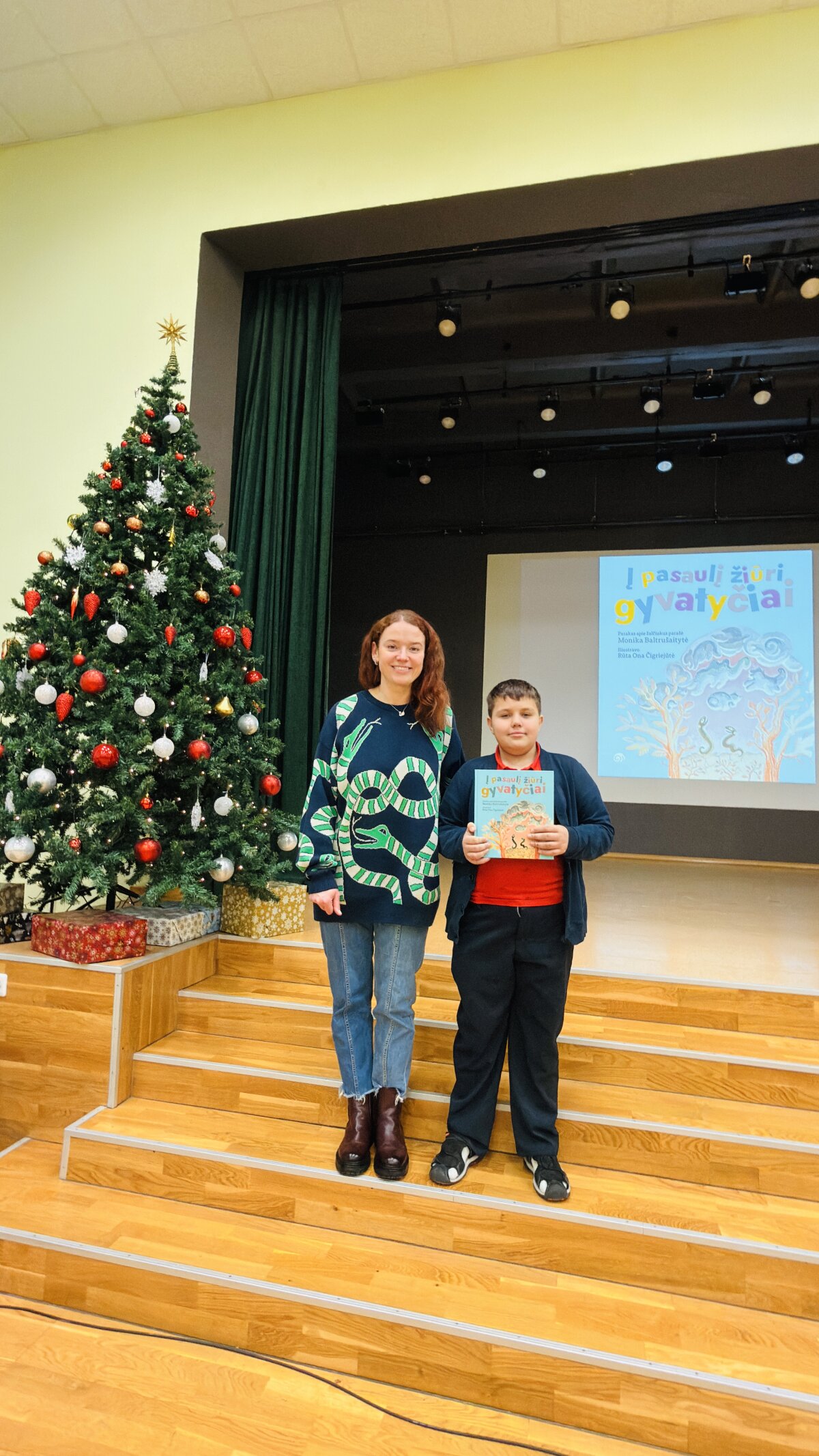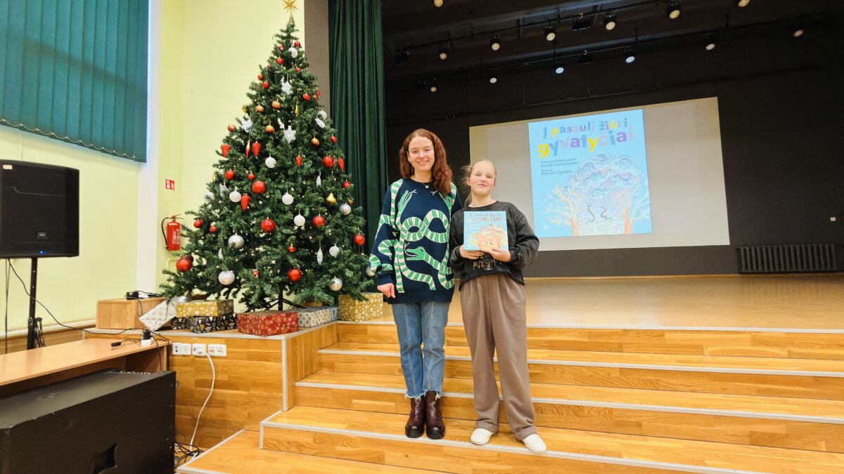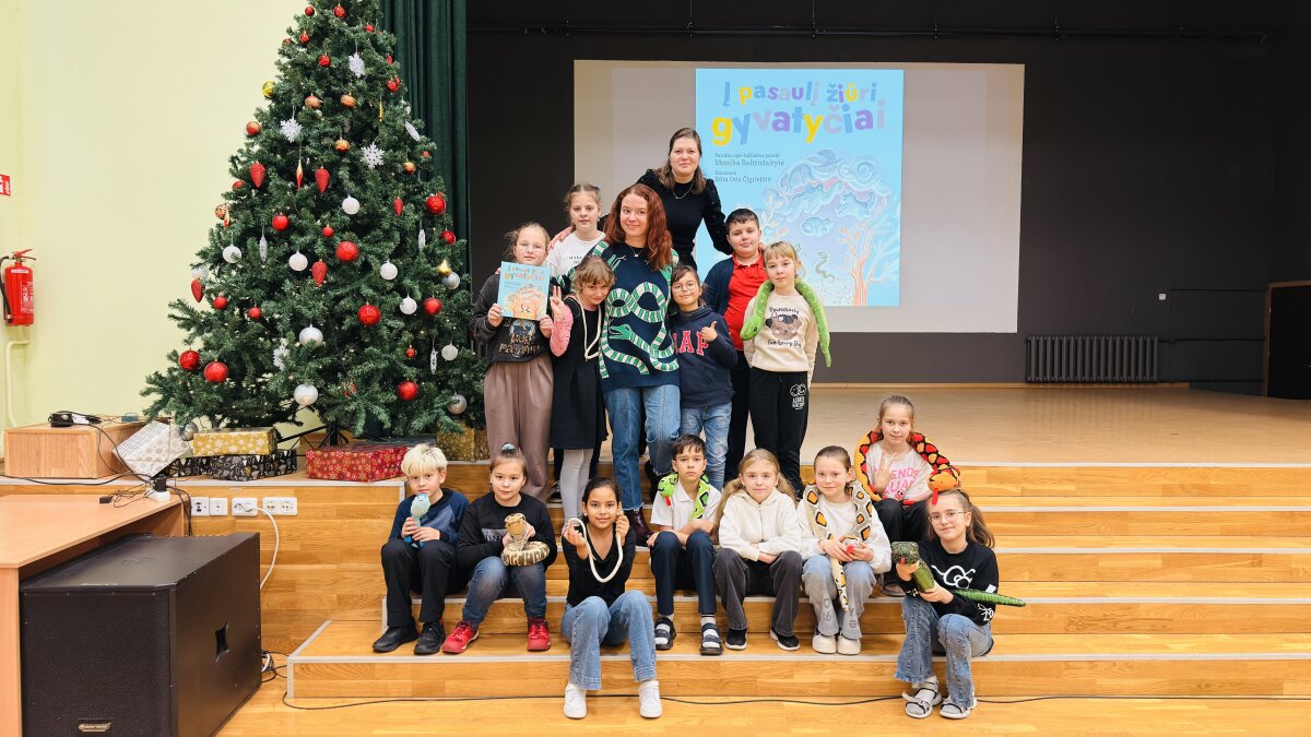 Gruodžio 2 d. mūsų gimnazijoje lankėsi rašytoja Monika Baltrušaitytė, o pradinių klasių mokiniai atidžiai klausėsi jos pirmosio knygos vaikams pristatymo „Į pasaulį žiūri gyvatyčiai“ („Slinktys“, 2025 m.). Knyga dar kvepia spaustuvės dažais.