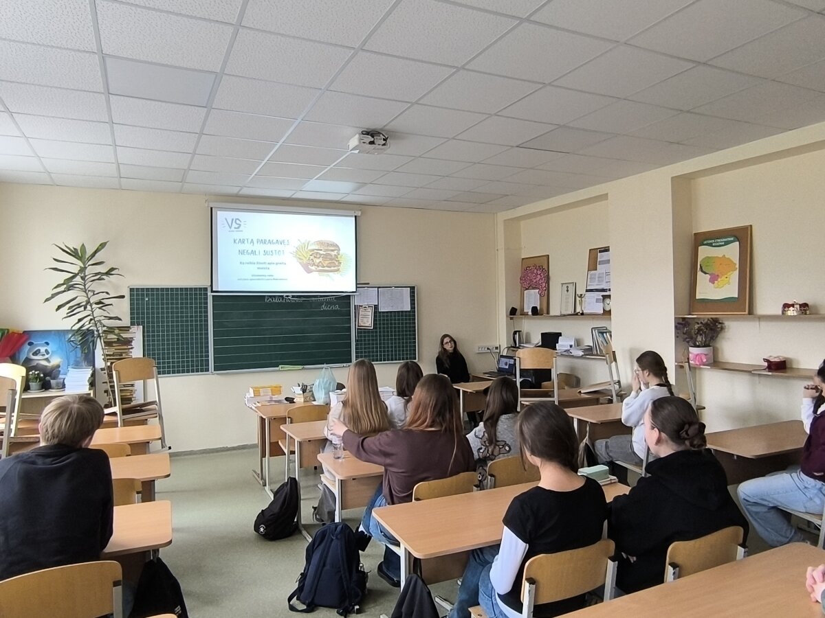 Tikimės, kad ši pamoka ne tik suteikė žinių, bet ir paskatino mokinius sąmoningiau rinktis tai, ką deda į savo lėkštę. Dėkojame Vilniaus visuomenės sveikatos biuro specialistei už vertingas pamokas!