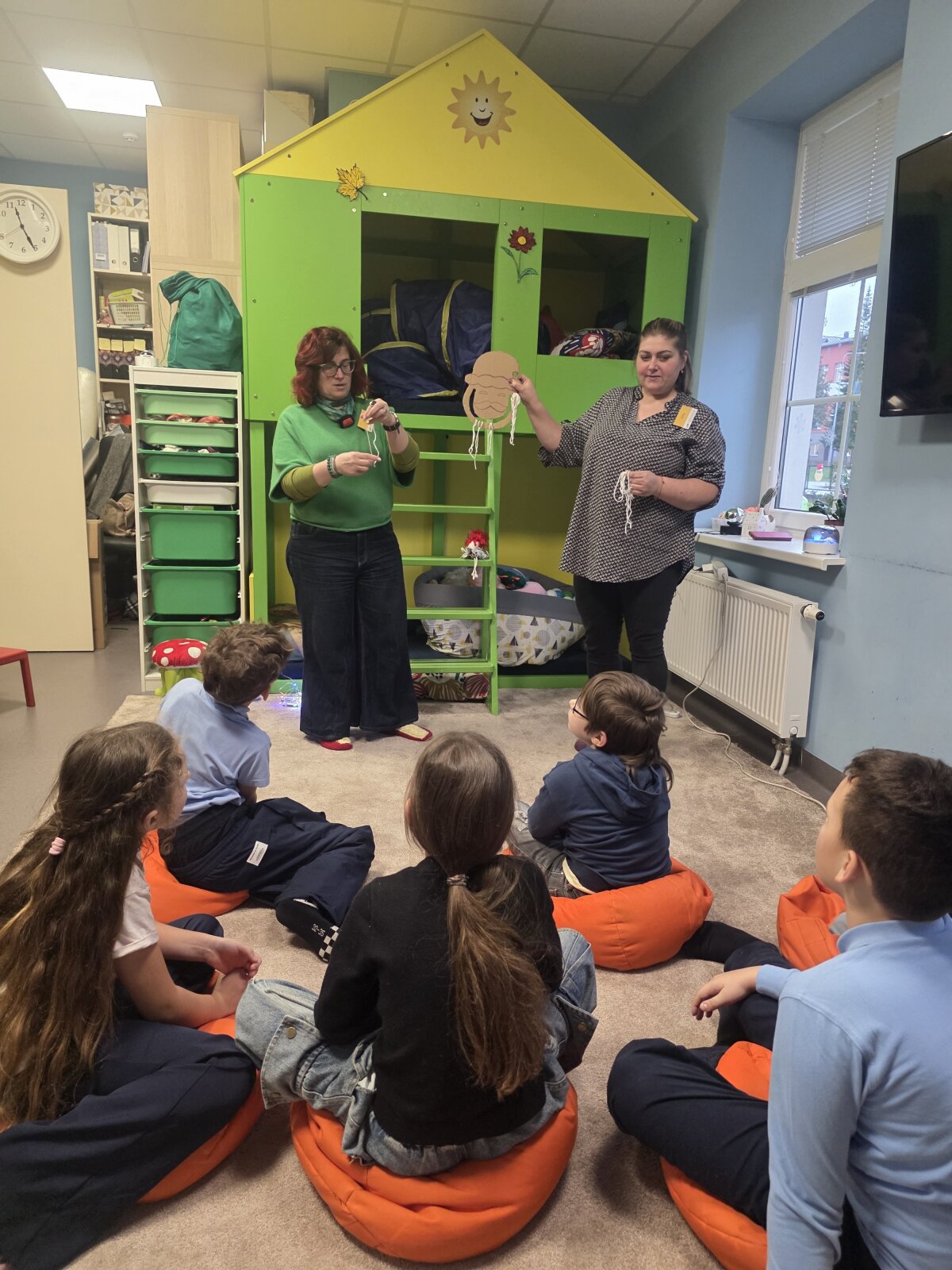 Po pasakos vaikai kūrybingai gamino eglutės žaisliuką – kiekvienas darbelis tapo mažyte šviesos kibirkštimi, kurią parsinešė į savo namus ir širdis.