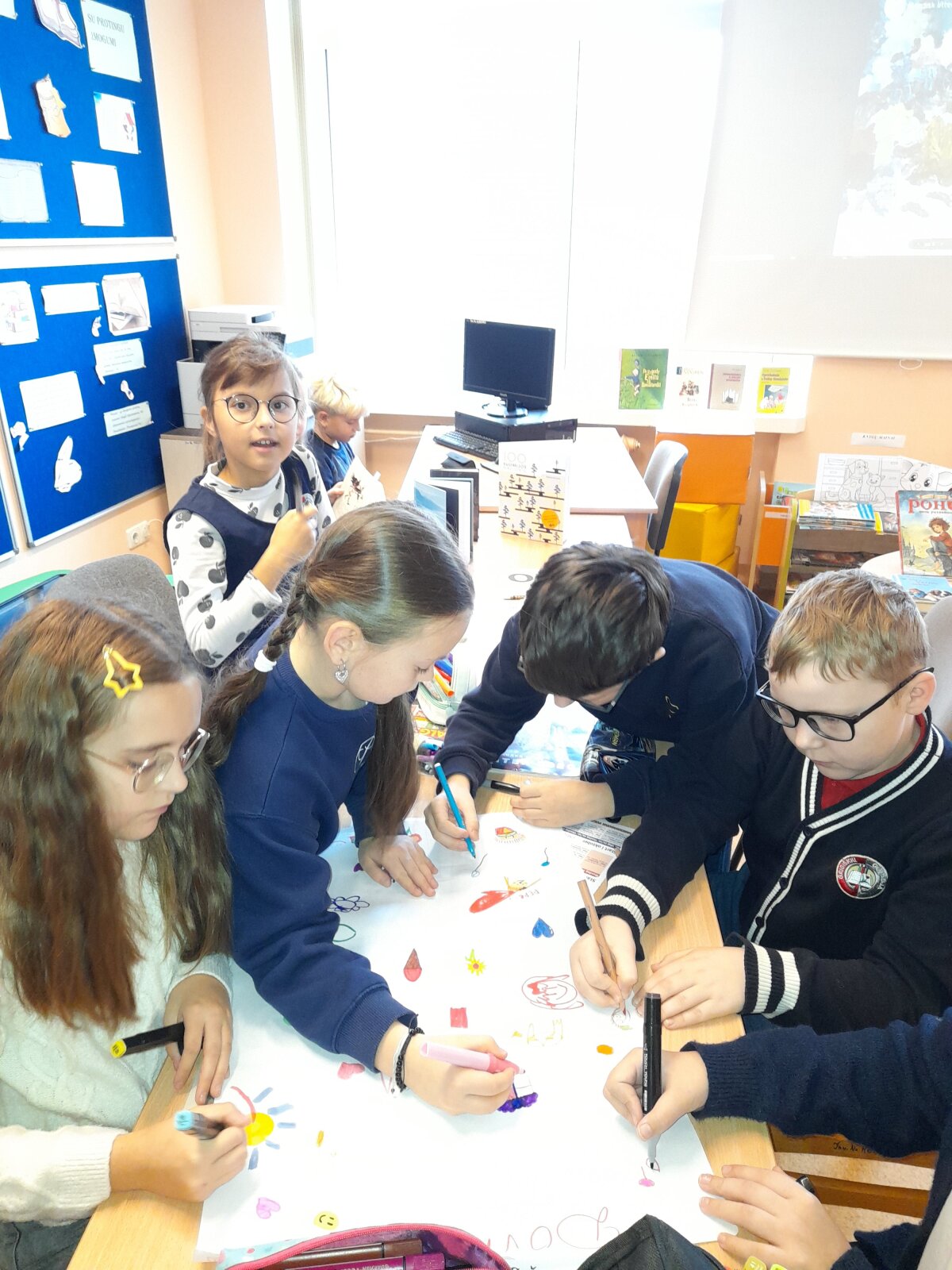 Šių metų projekto tema: „Šiaurės šalių vienybė“. Su mokytojomis ir mokiniais aptarėme ir plakatą: dažų potepiuose atsekėme vaikus, sėdinčius rateliu prie laužo, juk tai ir reiškia VIENYBĘ, DRAUGYSTĘ.